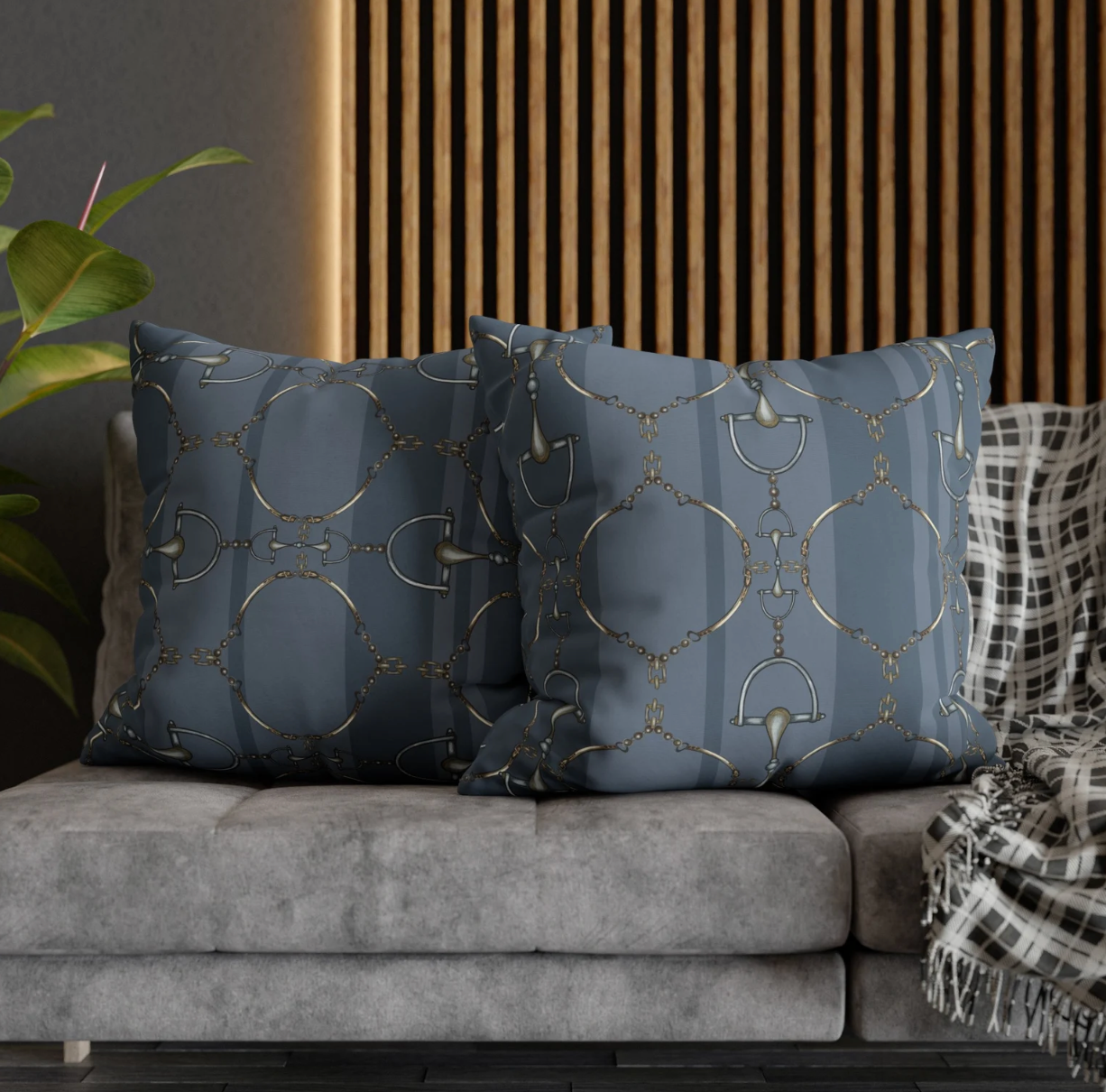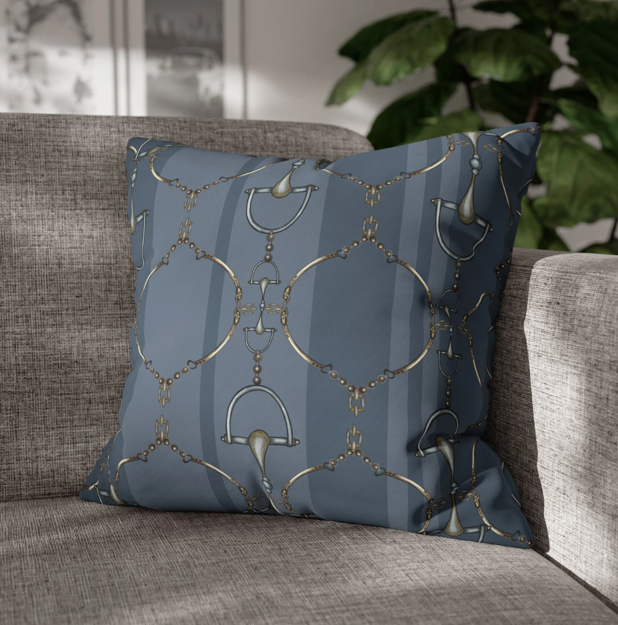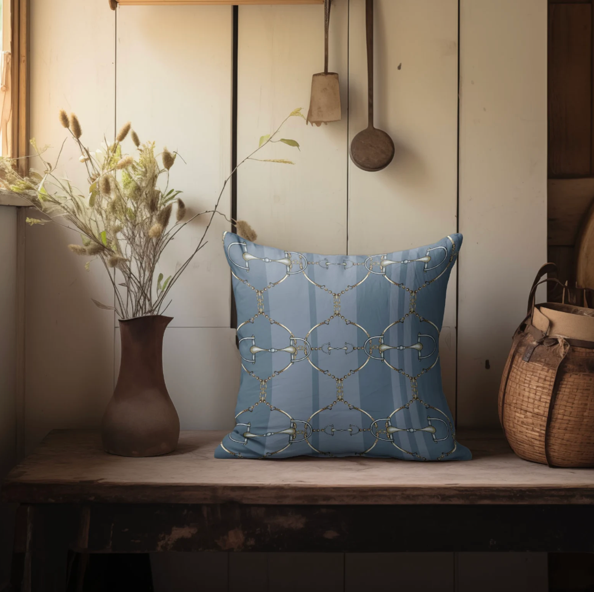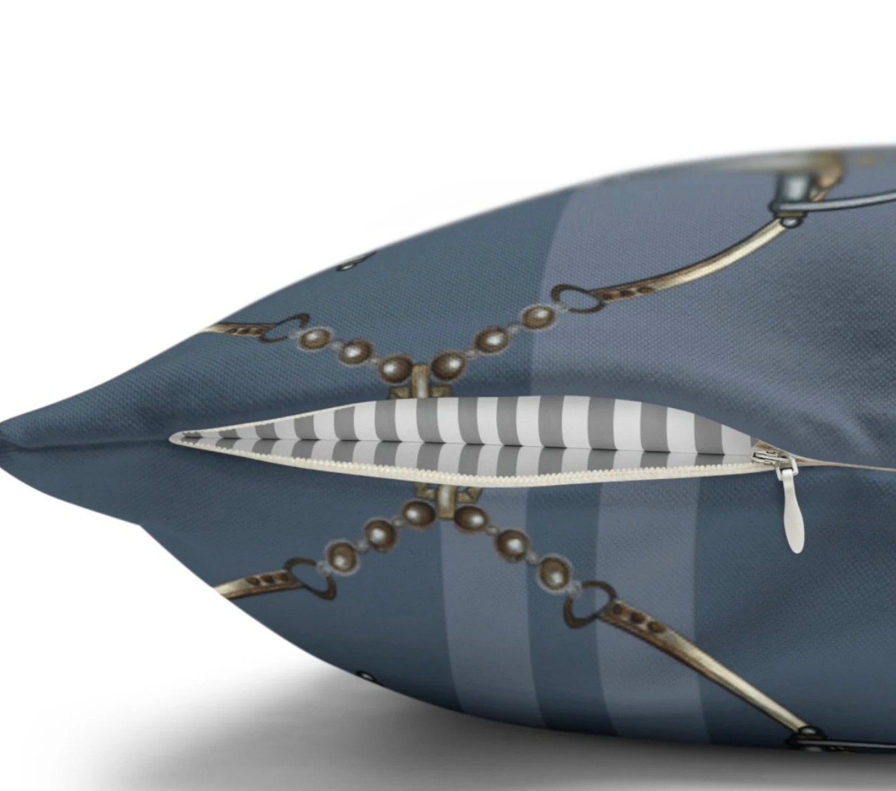 Blue Stripe Equestrian Snaffle Bit Design Pillow Case