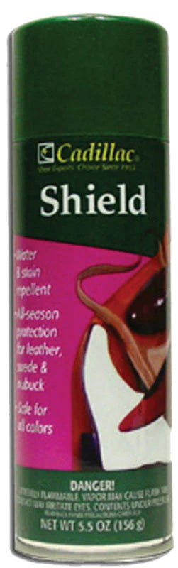 - WATERPROOF YOUR SHOES: Keep your shoes cleaner and drier with Cadillac Shield waterproof spray! Protect suede, fabric, nubuck, leather, nylon, polyester, canvas, and synthetics. No matter the material, Shield will keep you protected from rain, snow, puddles, and any other water damage.
