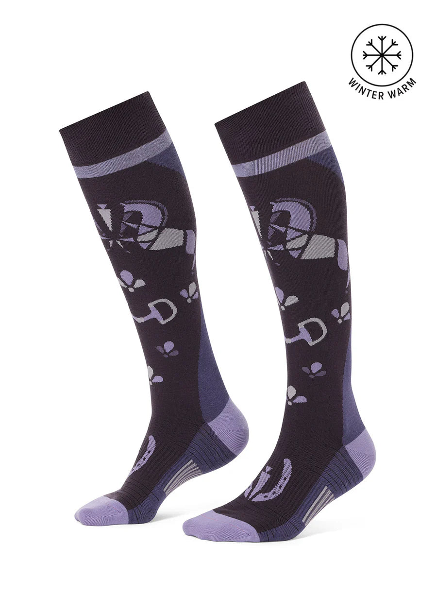 Your feet will be raring to go! These socks combine a lightweight wool blend for warmth and breathability with reinforced heels and toes for extra durability. The knee-high length slips easily into tall boots and the playful horse design adds fun flair to your winter barn wardrobe while coordinating with your favorite Kerrits styles.