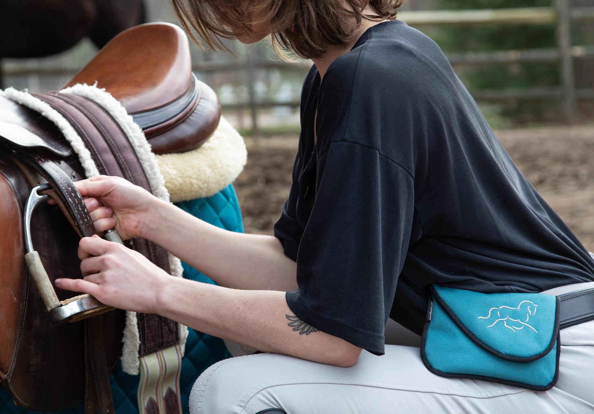Woofhoof's Treat Pouch is a slim, lightweight, and stylish pouch that allows you immediate access to treats for your horse when you need them. It features: