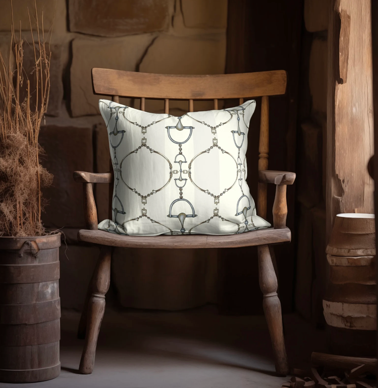 Ivory Striped Equestrian Snaffle Bit Design Pillow Case