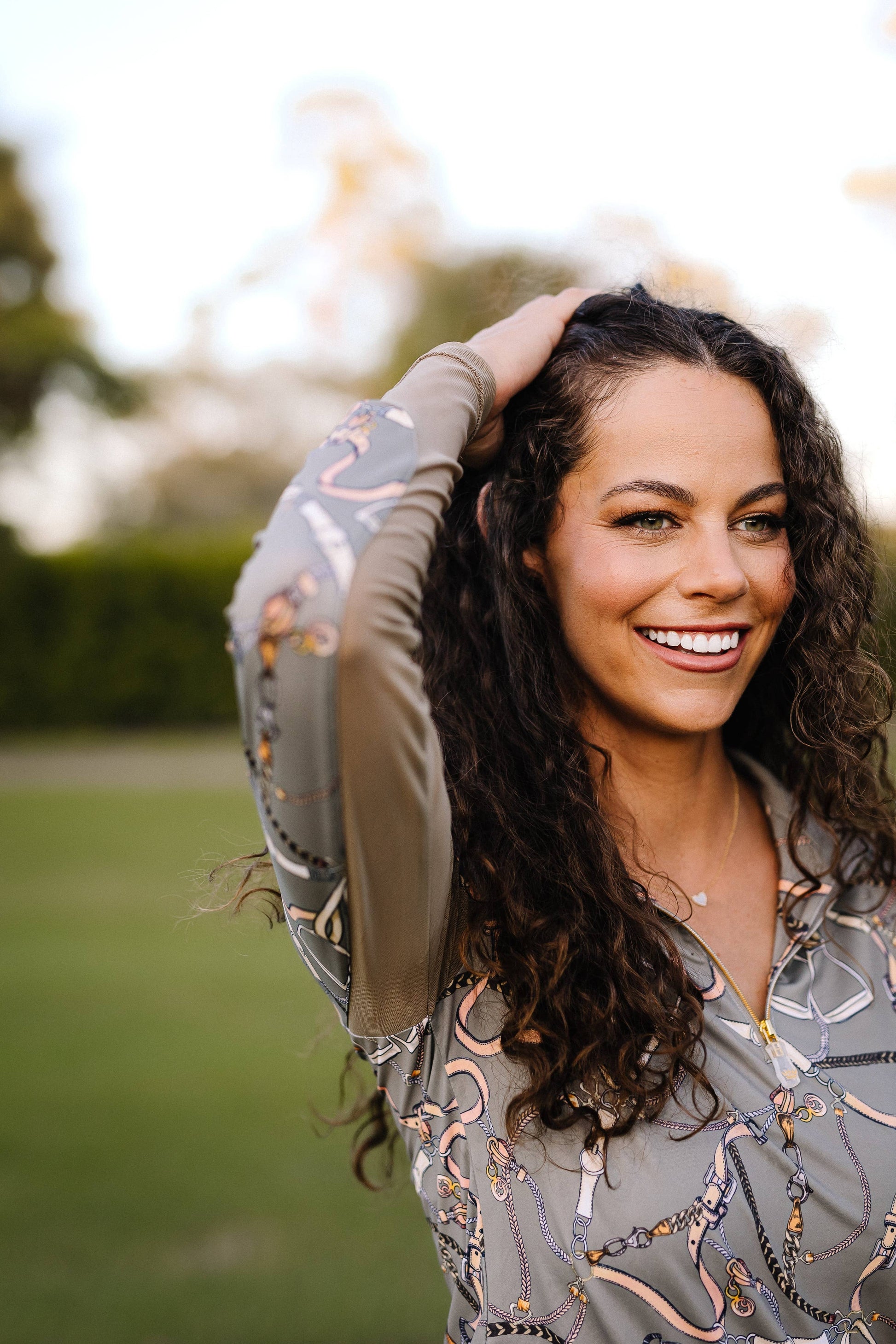 Our European belts and stirrup print in rich taupe, corals, tan and cream are a twist on a true classic. Nothing like a little giddy up in your everyday training whether in the ring, on the green or on the court. UPF 30, gold 9” zipper, breathable power mesh, 4-way stretch fabric in a contemporary fit.