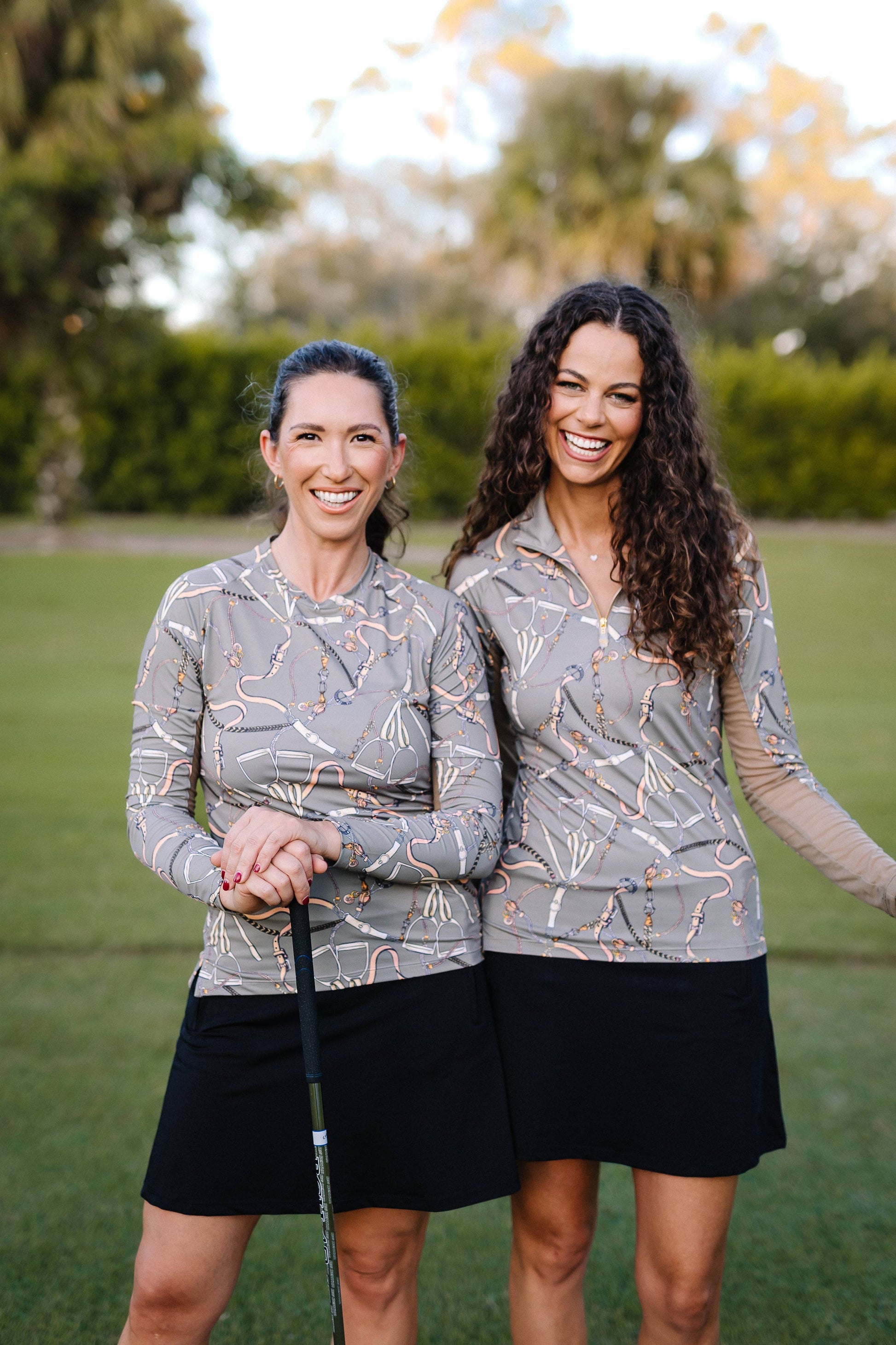 Our modern crewneck silhouette meets classic European vibes in our rich taupe belt & stirrup print. UPF 30, breathable power mesh, 4-way stretch fabric in a contemporary fit. Key Features: * UPF 30+ Protection: Provides reliable sun protection, keeping your skin safe from harmful UV rays. Learn more about UPF protection. * Breathable Power Mesh Sleeves: Cooling mesh under-sleeve panels offer superior ventilation. * Soft 4-Way Stretch Fabric: Ensures maximum comfort and freedom of movement with 92% polyester and 8% spandex blend. * Antibacterial Odor Resistance: Maintains freshness between washes with built-in odor-reducing properties.