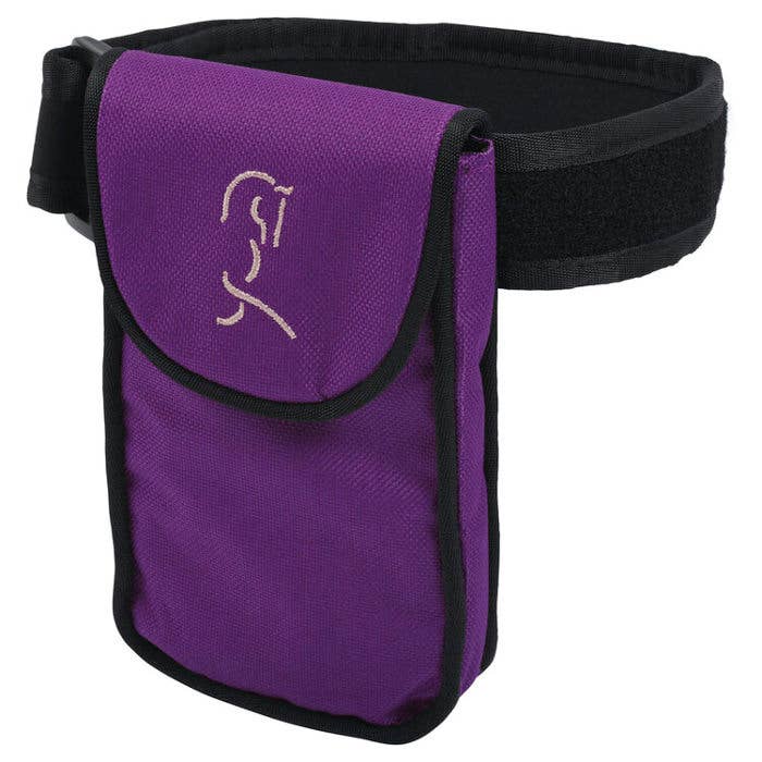 Beautifully embroidered and piped, magnetic cell phone cases are now available for the equestrian who wants immediate access to their phone when riding and training. No more messy Velcro closures or cheap neoprene material, Woof Hoof cell phone case is made with quality nylon and a unique magnetic closure for quick entry to your phone when needed. While the magnet keeps your phone safe, the generous strap secures the pouch to your leg while the front flap ensures your phone will remain dust free. Finished with and elegantly embroidered horse head graphic, this product is sure to be the next must have equestrian accessory! Hand or Machine-wash cold, line dry. Holds phones up to 7.5"H x 4"W x .75"D.